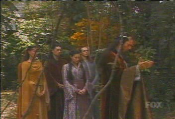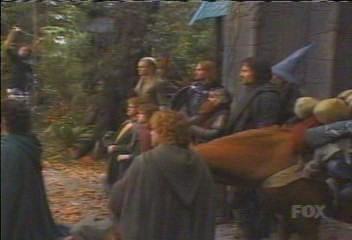 The following behind-the-scenes shots are all from Fantasy Planet: 1. Hugo Weaving stands with Liv Tyler and the "Elves" behind him. 2. The Fellowship stands before Elrond. These two shots help explain the layout of the scene. 3. Liv Tyler with Elf actors. 4. Note Orlando Bloom on the right edge of the frame. 5. Tyler seems to reach out towards Bloom. Hugo Weaving seems to be the figure blocking the frame. |