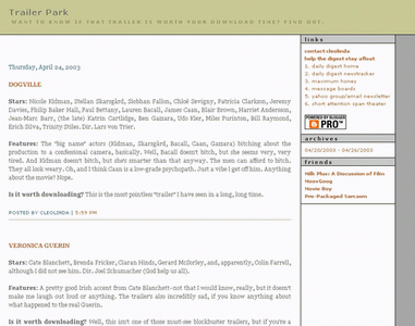 Effective April 2003: More Trailer Park goodness in blog format! Click to be forwarded to the new Trailer Park. |