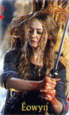 | More Gollum: So sayeth Peter Jackson, who adds that they only finished effects for scenes they were sure they would use. Thus, no stills exist of these scenes. Yet. At left: the 12/02 Cinefex cover. "Gandalf talking to Aragorn at night about the union of The Two Towers" (also TORN quote above): Well, if this is a deleted scene, it certainly explains why I have all these trailer caps and can't figure out where the hell they go. Courtesy War of the Ring. Theodred, wounded, is actually seen being lifted off the field of battle. Eomer and the Rohirrim: Is this the battle from which Eomer brings back the woun-ded Theodred? Or is this the aftermath of their fight with the orcs (when Merry and Pippin escape)? We have no idea. Update: the Decipher card at right reads, "We were driven back over the Isen yesterday with great loss." This actually fits IGN's theory on the Eomer image. Merry, Pippin, and the Ent Draught: Definitely on the DVD. The image is from the 2002 prop exhibit, courtesy TheOne Ring.net. At right: We've uploaded the images to our own server (because... well, we can't remember where they came from), so click to enlarge. Aragorn tells the Rohirrim to let Brego go: Turns out Brego was Theodred's horse, and he won't let anyone else ride him (making Brego's "rescue" of Aragorn all that much more awwww-inspiring). One still suggests that this scene takes place in the stable right before Gandalf rides off. Saruman's library: A Decipher card points to a scene in the Orthanc library, where Saruman peruses a drawing of the Ring of Barahir--which Aragorn wears. Note in this trailer cap what's on the scroll Saruman's reading... More Eowyn on the Meduseld: Notice how she's wearing a brown leather bodice this time, as opposed to the scene where every- one first arrived. Update: this image of Eowyn appears in an ROTK calendar (see our preview). Therefore--is this Eowyn, left behind again, as Aragorn heads out to the Paths of the Dead? In other words--this is from ROTK. "You have the gift of foresight--tell me what you have seen!" Dude, this was in the trailer! We have no idea where it went-- only that yet another Arwen-Elrond scene may have seemed redundant in the editing process. Another reason it may have been cut: it seems to end with Arwen riding away--perhaps conflicting with (careful, if you don't know much about the books or haven't seen TTT, for that matter, this could be a spoiler: the impression the movie gives you that she leaves for the Grey Havens). More Arwen and Aragorn flashbacks: No word on how many or of what nature. More Gimli: Could be TTT. Could be ROTK. Nobody knows. Eowyn in the Glittering Caves: Also in the trailer. Apparently the uruk-hai break into the caves where the women and children are hiding. Right: Know where this playing-card image comes from? We'd love to credit it to someone. Arwen at Helm's Deep NOT on the DVD: We have photographic evidence that she was filmed there. However: ain't gonna happen. Pretend it never did. (Oh, and here's one more at Tolkien Online.) Update: TORN has some sketches of what Arwen's armor was going to look like at one point... even though it totally doesn't look like that now. And here's a few more flashes of Arwen left in the theatrical print (TORN credits them to Council of Elrond). Boromir appears to Faramir: In the books, Boromir appears to his brother in a dream, and Sean Bean has mentioned filming such an appearance. The image is from the Decipher Two Towers trading card line. Update: IGN DVD has pointed out, quite rightly, that there are a few Faramir shots that don't seem to have made it into the theatrical film: "We know that Faramir and his men find Boromir's boat, and it's possible that scene will be added back into the extended edition." Sam and Frodo's Osgiliath fight: Elijah Wood has said that the Sam-Frodo scuffle (Sam prevents Frodo from reaching the Nazgul) was actually shot as a much more involved throwdown. At left: a trailer capture that did appear in the film. The sewers of Osgiliath: The way the movie's cut now, Sam and Frodo go straight from Faramir releasing them to Gollum leading them through the woods. But a number of stills of "the Osgiliath sewers" were released, showing how Faramir helps them escape undetected. In fact, there's even a Topps card called "In the Osgiliath Sewers." Update: We are now considering the following scenes to be from ROTK. Arwen and Elrond: Still no clue where these images came from. Two Towers? Return of the King? Nobody knows. They're a matched pair, however. Update: Alley Cat Scratch has excellent proof that the purple dress above and the blue dress below are the same dress--the fabric just catches light in two tones--meaning that the scenes are connected somehow. Lorien: Well, Arwen and Elrond at least look like they're facing a third party, and the picture immediately below seems to show Elrond meeting Celeborn in Caras Galadhon (you know, the treehouse city). Arwen and Galadriel: Again, these seem to be a matched set--note Galadriel's "mir- ror" basin in the background. You got a clue? Drop us a line and let us know. But what about Sméagol and Déagol? The Voice of Saruman chapter? The palantír? Head on over to our Return of the King preview. If you're interested in hearing about updates to this page or the Daily Digest in general, you can sign up for the weekly newsletter at our Yahoo Group. |